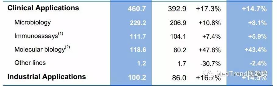 所有的战略性产品销量增长表现理想,尤其是分子生物业务的FilmArray® 产品线。