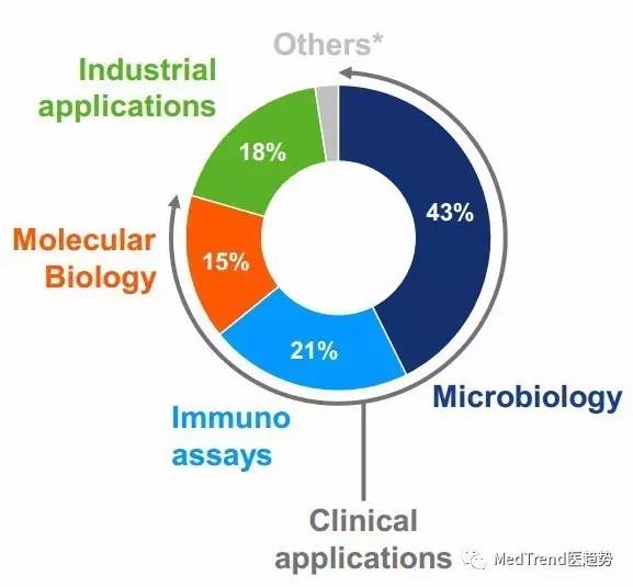在临床微生物领域保持领先,生物梅里埃的市场份额约占40%,处于世界领先地位。