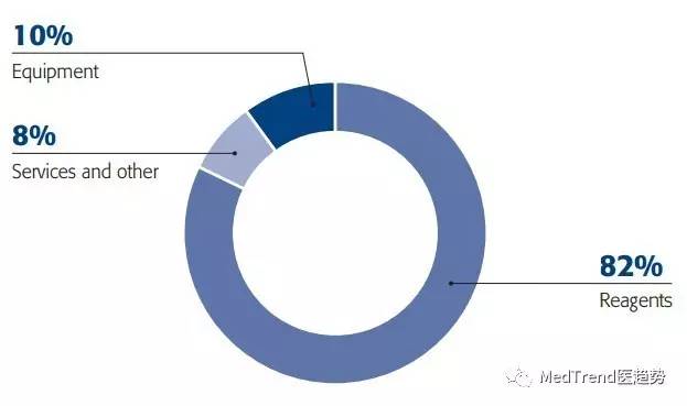 试剂耗材占82%,仪器设备占10%,服务其他占8%。