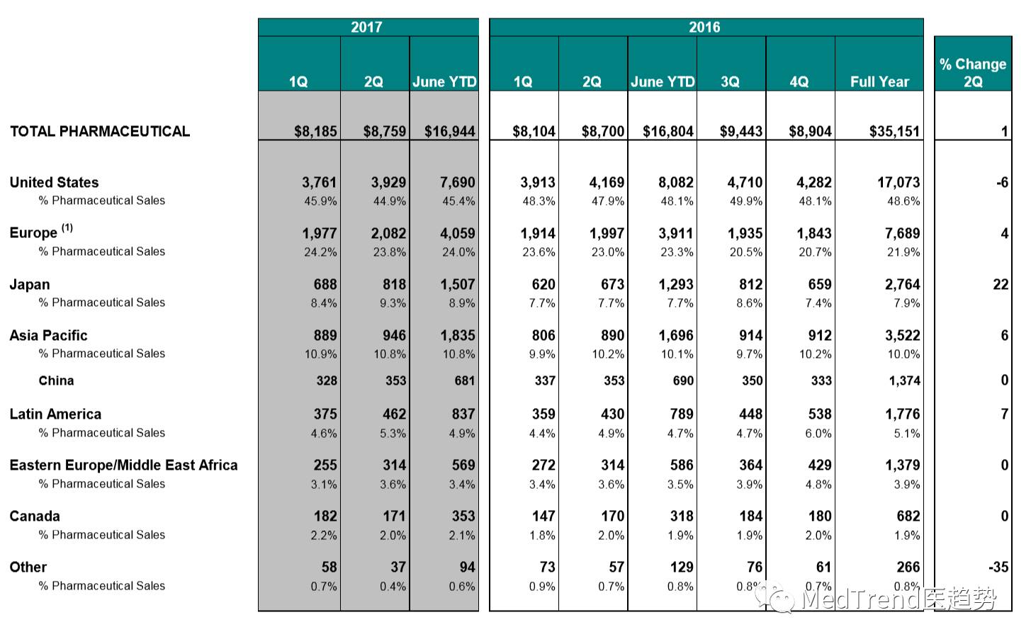 美国是默沙东的第一大市场,2017年上半年营收占总营收的45%,但Q2同比下降了6%。