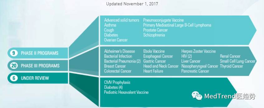 而默沙东最新的产品管线显示,有20个项目处于临床三期,未来的发展潜力巨大。