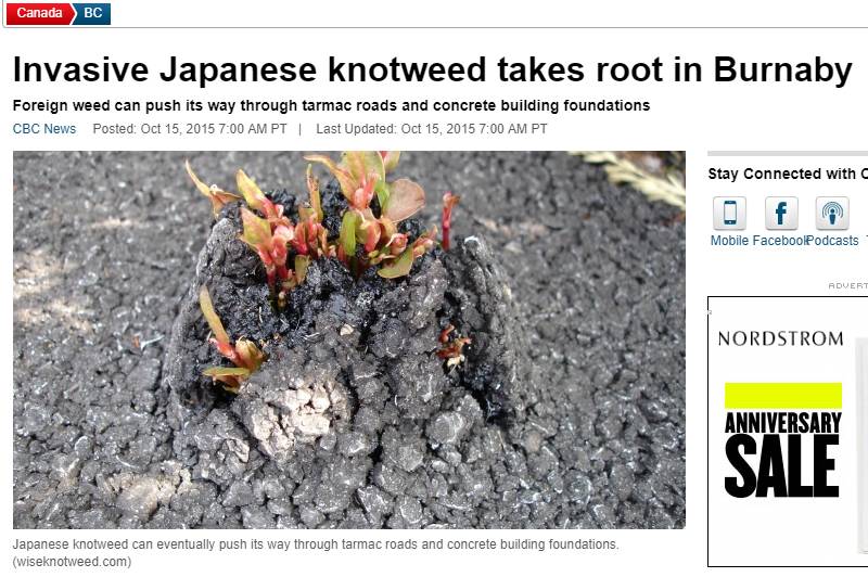 加拿大早在1901年引进日本虎杖,现在,温哥华不少地区也正在经受这种植物的困扰。
