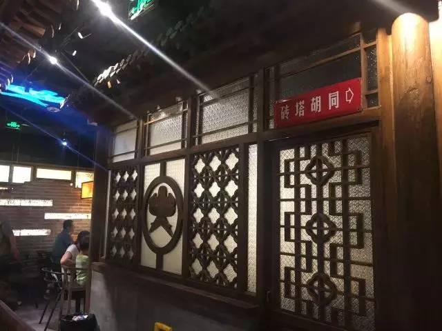 小吊梨汤(和平里店)位于一个小区门口,位置比较偏,但不是很难找。店门口没有特殊的装饰,门头也很简单,正门很小,但是店内可以说是别有洞天。餐厅内部有很多隔断,将整个餐厅隔成数个小厅,每个厅内都有数量不同的餐桌。第一次去的消费者很容易在餐厅里迷路。餐厅整体布局也比较紧凑,用餐高峰期人声鼎沸,消费者之间的干扰较大。店内整体的装修风格比较复古,从餐桌、餐具上就能看出来。店内还会播放说书,让人觉得置身于老北京随处可见的茶馆中。
