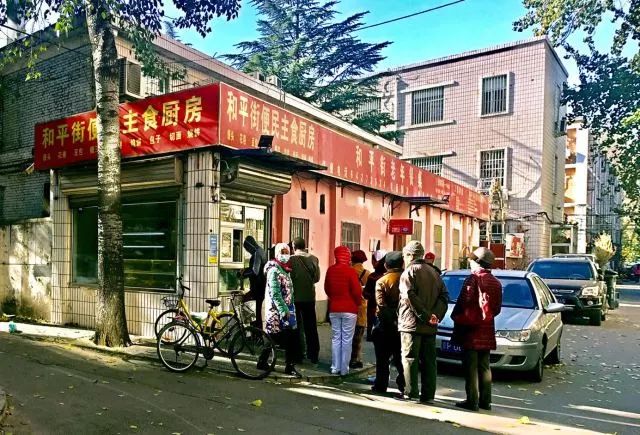 图 | 临近中午,老人们在主食厨房外排起了队伍