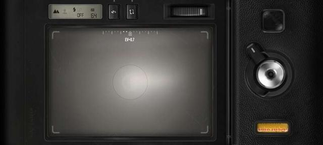 一款胶片模拟应用的拍摄界面。快门按钮、胶片窗、取景窗等老式胶片相机的元素被一一复原。