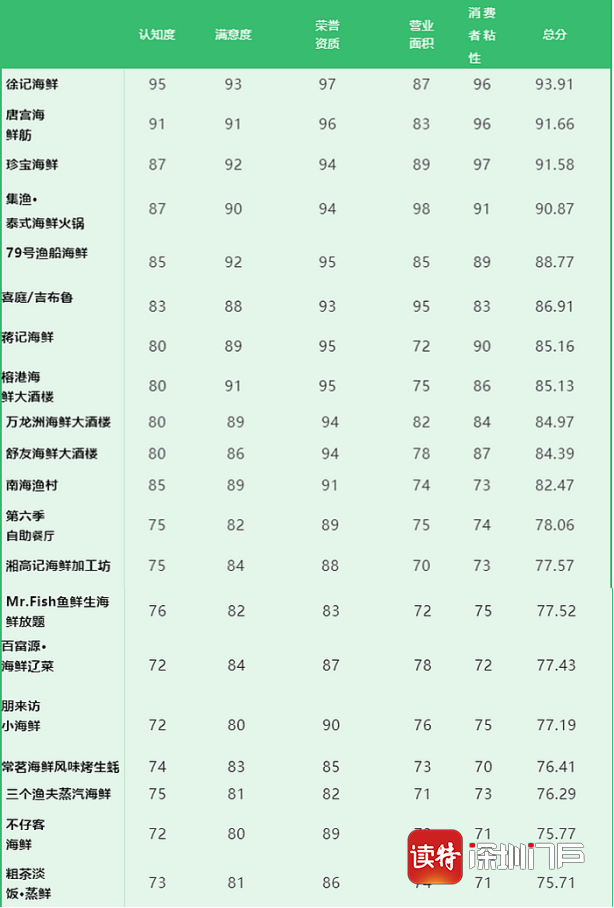 图表:中国海鲜餐饮品牌综合影响力排名