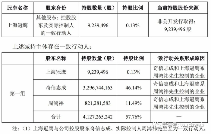 360控股股东天津奇信志成科技有限公司(简称“奇信志成”)、实际控制人周鸿祎先生与上海冠鹰互为一致行动人,奇信志成、周鸿祎持有的公司股份目前无减持计划。