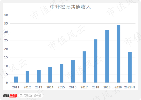 (来源:公司年报数据统计)2011年,公司的其他收入仅有3.7亿。10年来公司的其他收入增长近十倍,复合年化增长率高达27%。