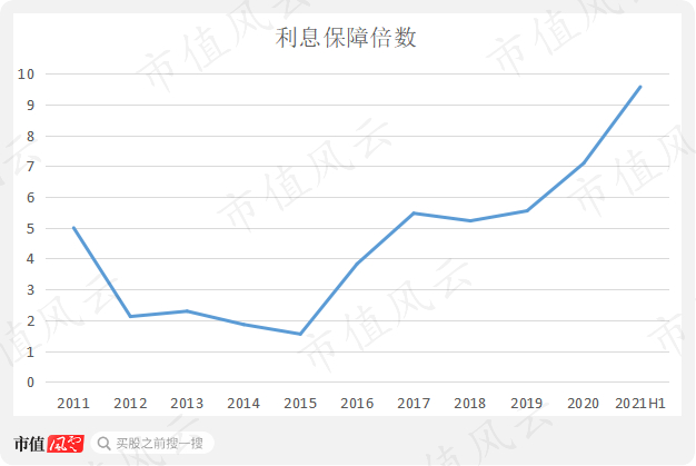 (来源:公司年报数据统计)2015年,中升控股利息保障倍数仅为1.9,同年账上短期借款高达137亿而现金及现金等价物仅为44亿。曾经面临过债务压力,随后公司的利息保障倍数逐年上升,2021年上半年已超过9倍。