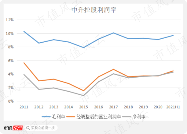 近三年,公司的毛利率约为9%,经调整后的营业利润率约为3.7%,净利率约为3.7%。