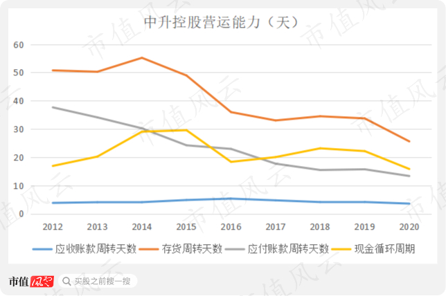 2020年,公司存货周转天数为26天。与此同时,应付账款周转天数也逐年下降,侧面反映公司和上游品牌商的拖账能力下降。2020年公司的现金循环周期约为16天。