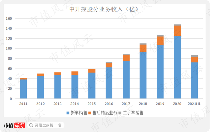 汽车卖的多了,售后服务自然就多了起来,近十年来公司售后精品业务增长更快,十年复合增长率为29%。而新车销售业务十年复合增长率为26.2%。