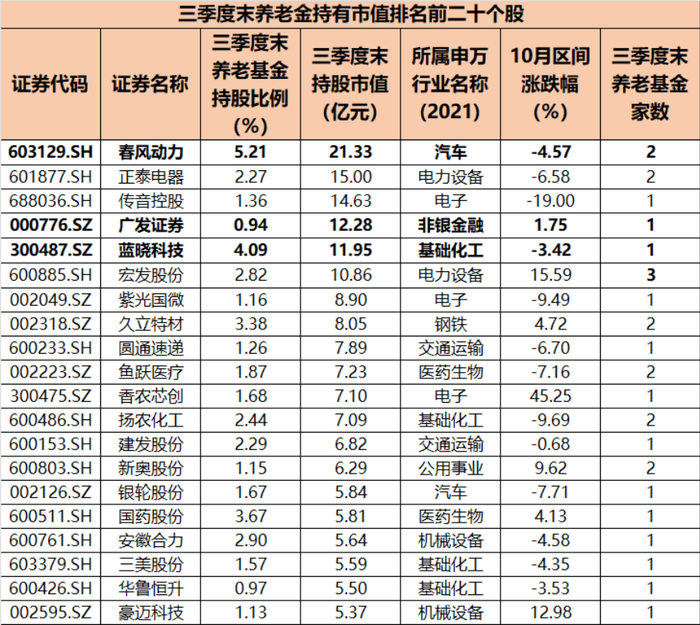 截至三季度末,养老金共计进入176只个股的前十大流通股东名单中,期末持有市值为380亿元。