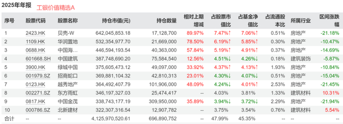 工银价值精选最新重仓聚焦在A股和港股的中介和地产开发龙头公司,同时尤宏业认为,港股同类公司估值更低、质地可能更优,因此配置了近一半的港股。