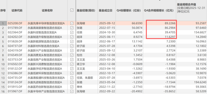 这俩都是永赢基金推出的“智选”系列产品,它们是一组聚焦前沿硬核科技赛道、追求高弹性的工具型产品。25年四季度,永赢基金旗下多只“智选”系列产品实现规模大涨,可以说在这一轮行情中赢麻了。