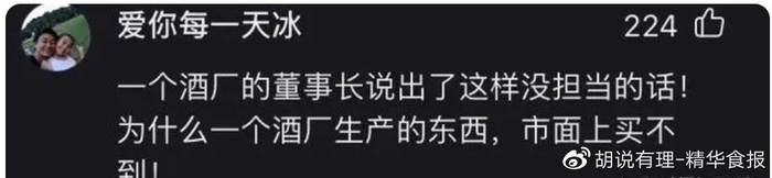 今日头条用户“爱你每一天冰”发表观点:“一个酒厂的董事长说出了这样没担当的话!为什么一个酒厂生产的东西,市面上买不到!”