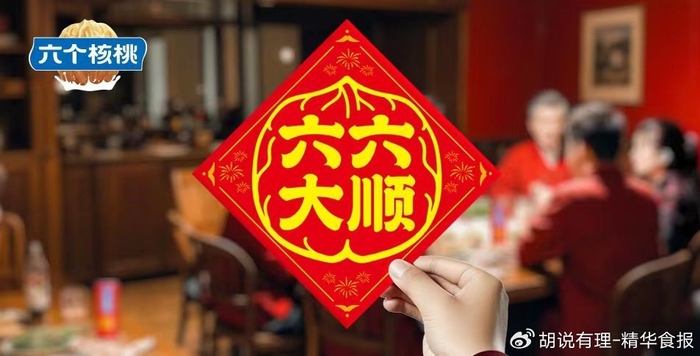 “‘六六大顺’是中国的福文化、喜文化、顺文化,也是中国传统的吉祥祝福用语,六个核桃将‘顺文化’融入到产品之中,包装上的‘核桃’形象变为‘六六大顺’,承载了‘六六大顺’的美好寓意”,中国食品产业评论员朱丹蓬表示,以往过年帖“福”字是传统,今年六个核桃送上流行帖“六六大顺”字幅,这契合了更多人把“顺”作为新一年的期待心理,这也将成为一种过年的社会现象。而实际上,“六六大顺”本就是六个核桃一以贯之的品牌初心,选择“六六大顺”作为自己的包装设计,顺理成章、实至名归!