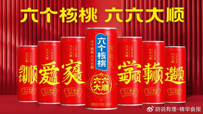 据了解,六个核桃一直是每年春节送礼的国货大单品之一,而今年春节前的大变装,更是契合中国人表达美好祝愿的言辞,增添喜庆气氛,春节期间走亲访友、团圆欢聚,“六六大顺罐”很自然也就成为人们更好的选择。