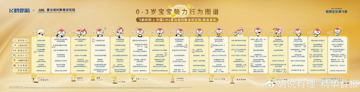 就在前不久,飞鹤还联合中国蒙台梭利教育研究院(CMS)共同发布了《0-3岁宝宝脑力行为图谱》(下称《图谱》)。作为飞鹤启动脑发育战略的重要科研成果之一,图谱覆盖了0-3岁宝宝成长和脑发育的16个重要节点,通过感知能力、大肢体动作、精细动作、自我行为、问题解决能力、社交情感、语言沟通等7大维度,展示宝宝不同时期脑力行为表现,让大脑发育可视化。父母可以通过观察宝宝的日常表现,对照《图谱》评估其发育状态并采取相应的干预措施,以帮助宝宝更好发育,培育聪明宝宝。
