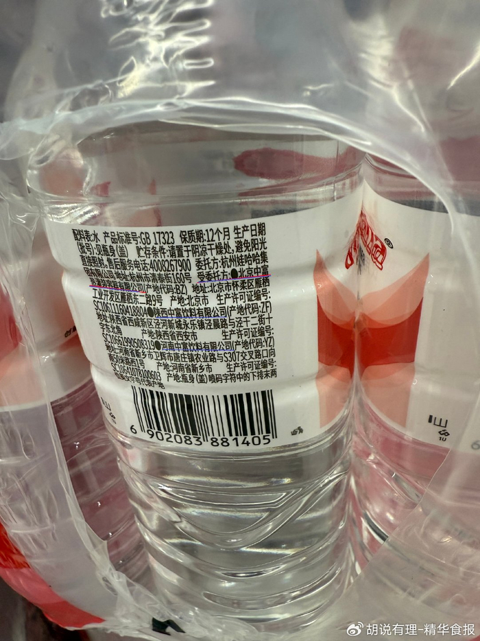 值得注意的是,娃哈哈声明中还提到“未来,娃哈哈将始终坚持自有生产模式”,然而,胡说有理在超市发现,今年5月份生产的娃哈哈依然有代工生产的,只不过厂家并不是今麦郎。