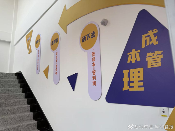 要“活下去,活得好、活得久”;“打造核心竞争力、构建‘极致成本’护城河”……,在妙可蓝多的工厂的参观走廊上,随处可以看到这样的宣传标语。