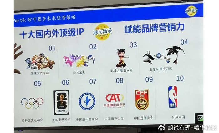 第二就是持续提升品牌形象及品牌核心价值。蒯玉龙表示,妙可蓝多希望树立一个心智就是:奶酪=妙可蓝多,选奶酪就选妙可蓝多。围绕这一核心,打造年轻时尚、积极向上的品牌形象,倡导让奶酪产品为身体提供营养与能量,而妙可蓝多品牌则提供积极向上的情绪价值满足。为此,用蒯玉龙的话来说,在大股东蒙牛的加持和推动下,10个顶级“王炸”IP将赋能品牌营销。