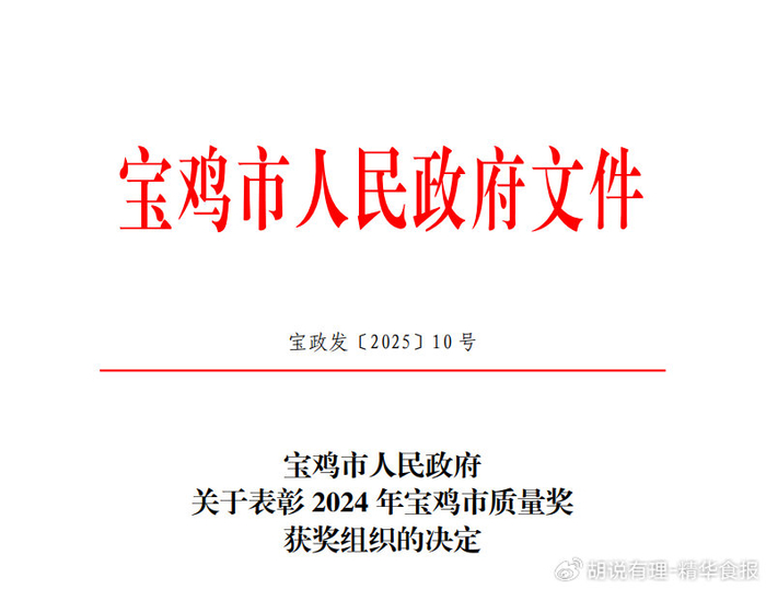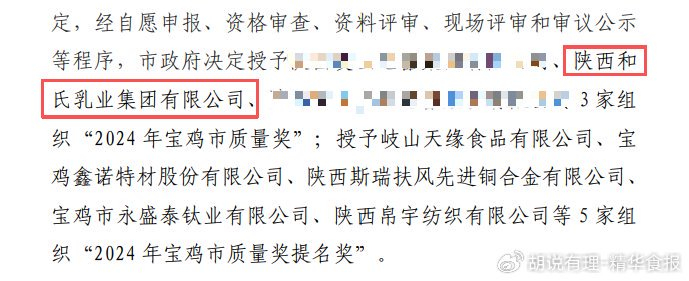 在羊乳产业发展的历史征程中,政府的认可始终是企业实力的权威注脚。和氏乳业2025年的荣誉版图,从一份分量十足的“质量奖”拉开序幕。其凭借完善的质量管理体系、显著的品牌效益与坚定的社会责任担当,斩获“宝鸡市质量奖” 这一市政府质量管理领域的最高荣誉。