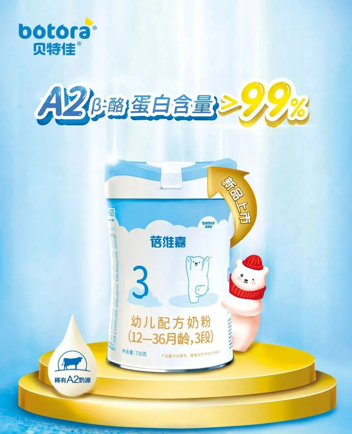 近日,贝特佳宣布,为更好地满足新生代消费群体对奶粉品质和营养的多元化需求,为更多母婴家庭带来喂养新选择,公司旗下蓓维嘉婴幼儿配方牛奶粉系列焕新升级,打造全新A2牛奶粉。