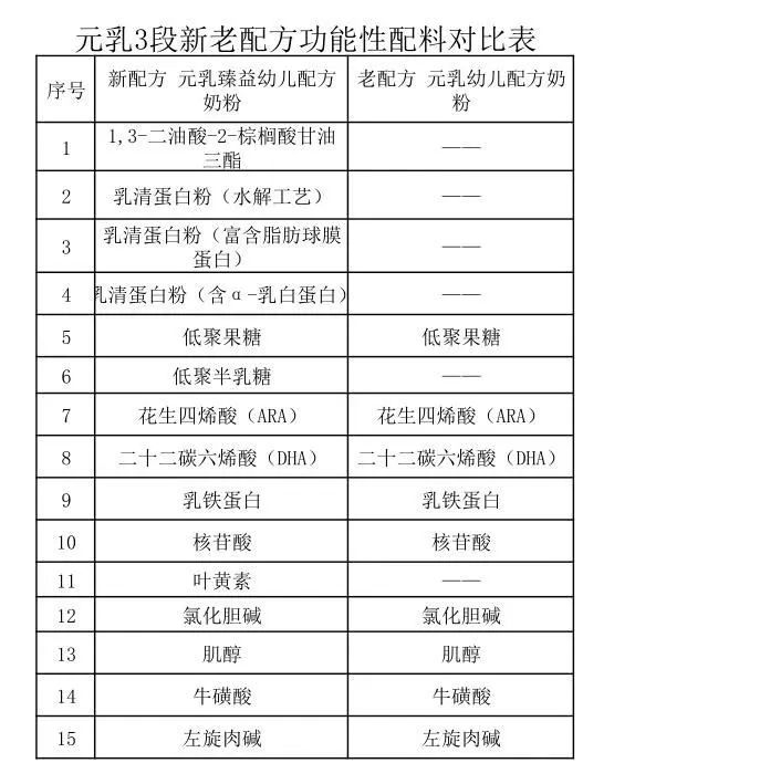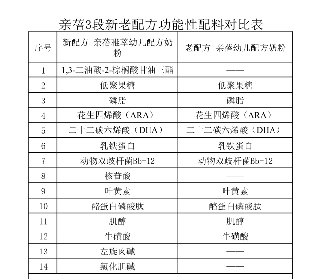 另外,新配方中低聚果糖含量由此前的2.35克/100克提升至3.75克/100克;DHA提升至95毫克/100克;ARA提升至140毫克/100克;乳铁蛋白含量提升至40毫克/100克;叶黄素由202毫克/100克提升至210毫克/100克;肌醇由37.5毫克/100克提升至44.6毫克/100克。