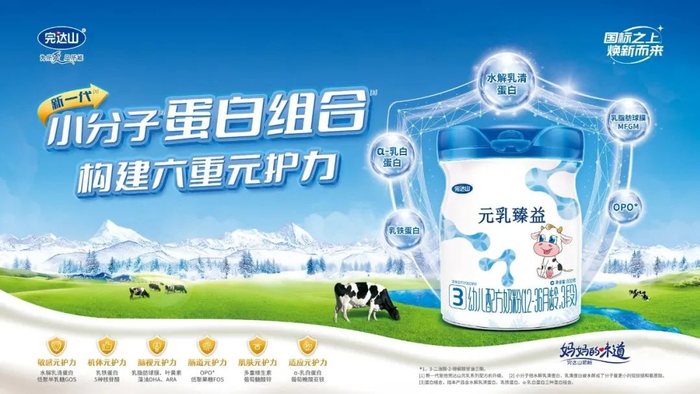 升级后的亲蓓稚萃婴幼儿配方奶粉定位中高端,为下线城市婴童渠道专供全配方大单品。