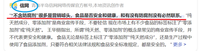 大众报业集团旗下信网报道称:“不含防腐剂”很多是营销噱头,食品是否安全与健康,和有没有防腐剂没有必然联系。