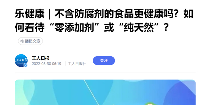 《工人日报》标题《不含防腐剂的食品更健康吗?》的文章直接否认了这一观点。