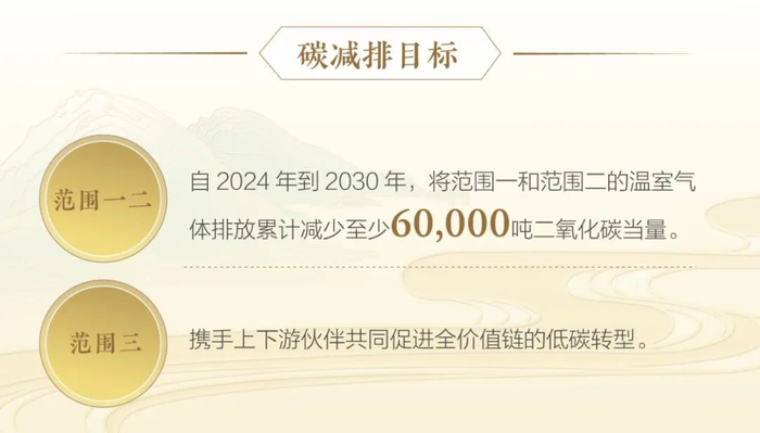 根据报告,水井坊计划自2024年至2030年,累计减少范围一(直接排放)和范围二(间接排放)温室气体至少6万吨二氧化碳当量;同时,通过深化与上下游伙伴合作,推动范围三(价值链相关排放)的全面低碳转型。
