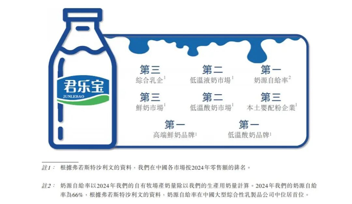 整整30年深耕乳制品行业,凭借卓越的全产业链一体化运营模式和强大的品牌矩阵,君乐宝在快速增长赛道中精准布局,已成长为中国乳制品行业的头部企业之一。招股书援引全球著名行业咨询机构弗若斯特沙利文(Frost & Sullivan)报告,按2024年中国市场零售额计,君乐宝在中国综合性乳制品企业中排名第三。