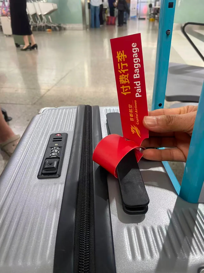 我看一位乘坐首都航空的乘客描述说,为避免被高额收费,她被迫在众目睽睽下清空行李箱,将衣物塞入手提袋和背包,最终仍因空箱重量支付48元托运费。这一场景被她形容为“像逃难一样狼狈”。