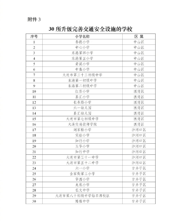 为有效防范化解在重点时段,部分学校门口因人员聚集造成事故的风险,根据全面排查情况,在市政道路可触达的30所学校(详见附件3)增设隔离护栏、升级完善交通标志标线,切实改善校园周边交通环境,保障校园周边交通安全和通行秩序。(责任单位:市公安局、市教育局、市城市管理局,相关区市县政府、先导区管委会)