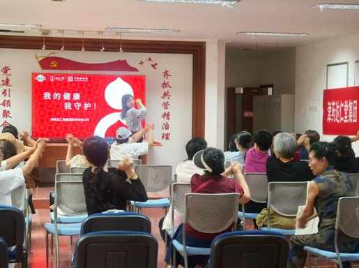 活动现场,科普志愿者首先深入浅出地讲解了心脑血管疾病的成因,包括高血压、高血脂、高血糖、肥胖、吸烟等常见危险因素,用通俗易懂的语言和生动形象的例子,让居民们轻松理解这些复杂的医学知识。同时,志愿者还教居民养生操。大家踊跃参与。