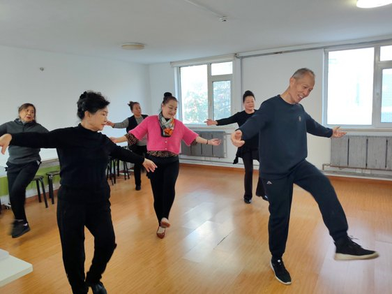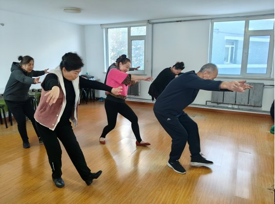 活动现场,翟老师充分考虑居民舞蹈基础差异,从体态调整、基础舞步教起,将复杂动作拆解为“抬手—转身—踏步”等简单环节,耐心示范每一个动作要领,现场互动氛围热烈。