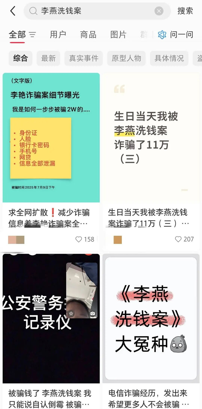 在小红书平台上搜索“李燕洗钱案”,有大量类似案例。