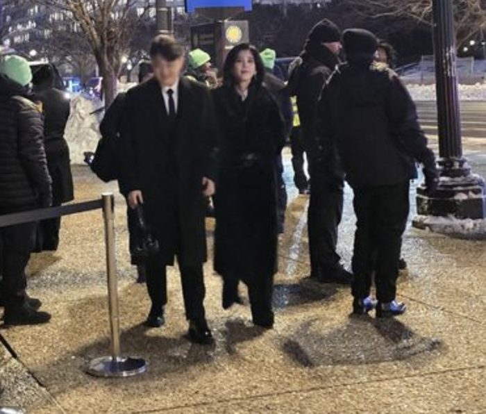 ▲1月28日,李富真和儿子任东贤被拍到在美国华盛顿街头