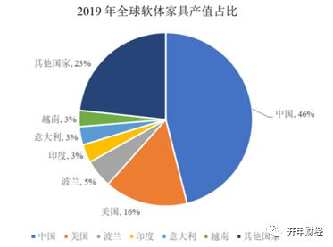 此外,2019年全球主要的软体家具生产国分别为中国、美国、波兰、印度、意大利和越南,其软体家具产值分别占全球的46%、16%、5%、3%、3%和3%,中国已是全球最大的软体家具生产国。