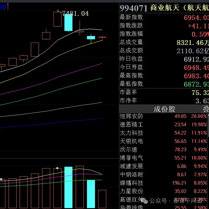 商业航天题材是前两天大跌的方向,这个板块我说过,不会一下子熄火,短期会反复活跃,所以商业航天题材短线可能再度回拉,但也是以短线应对为主,拉人气回升,还得造这类方向。