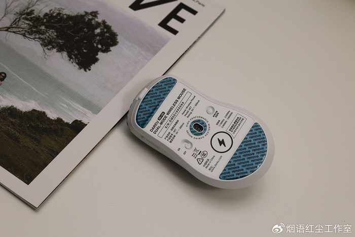 达尔优AE7在按键、滚轮、脚贴等关键部件上均采用了定制化或旗舰级方案,实现了全链路的高标准自研。按键系统采用了达尔优引以为傲的KBS Light轻量化按键技术,搭配欧姆龙1亿次寿命的机械微动,点击手感干脆利落,回弹迅速跟手,确认感极强。滚轮采用了定制方案,外衬斜条状橡胶防滑圈,内置丰实卫奇E10旗舰版编码器,滚动时刻度感清晰,对手指的宽容度高,侧边发力也能轻松触发,在浏览网页或游戏中切换武器时都能提供精准反馈。鼠标底部配备了超大面积的PTFE铁氟龙脚贴,在各种材质的鼠标垫上都能提供超低阻力、顺滑如丝的移动体验,让急停、瞄准等操作行云流水。