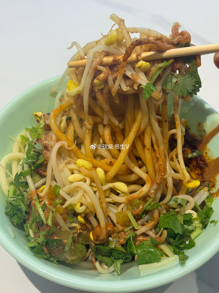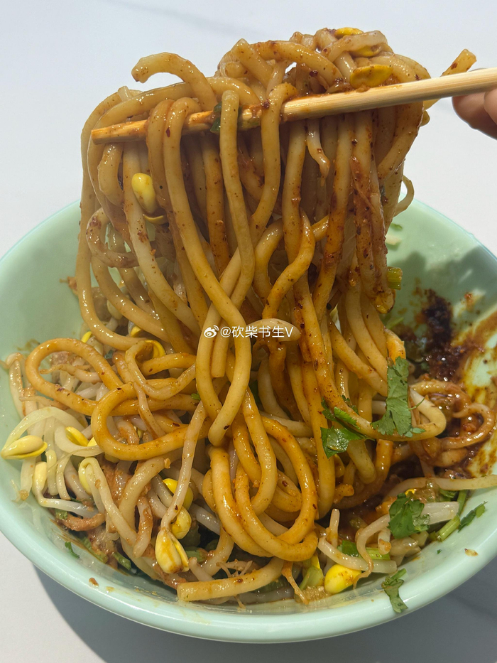 热干面的孪生兄弟——阜阳格拉条,7块钱一碗,喜欢吗?格拉条是饸饹面和热干面的结合体,面很粗,现在季节不对,没有荆芥。