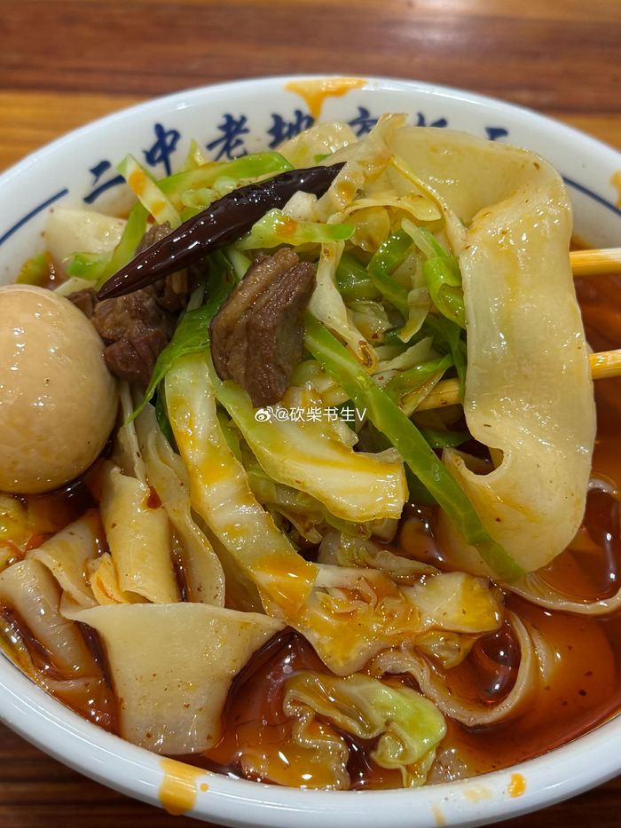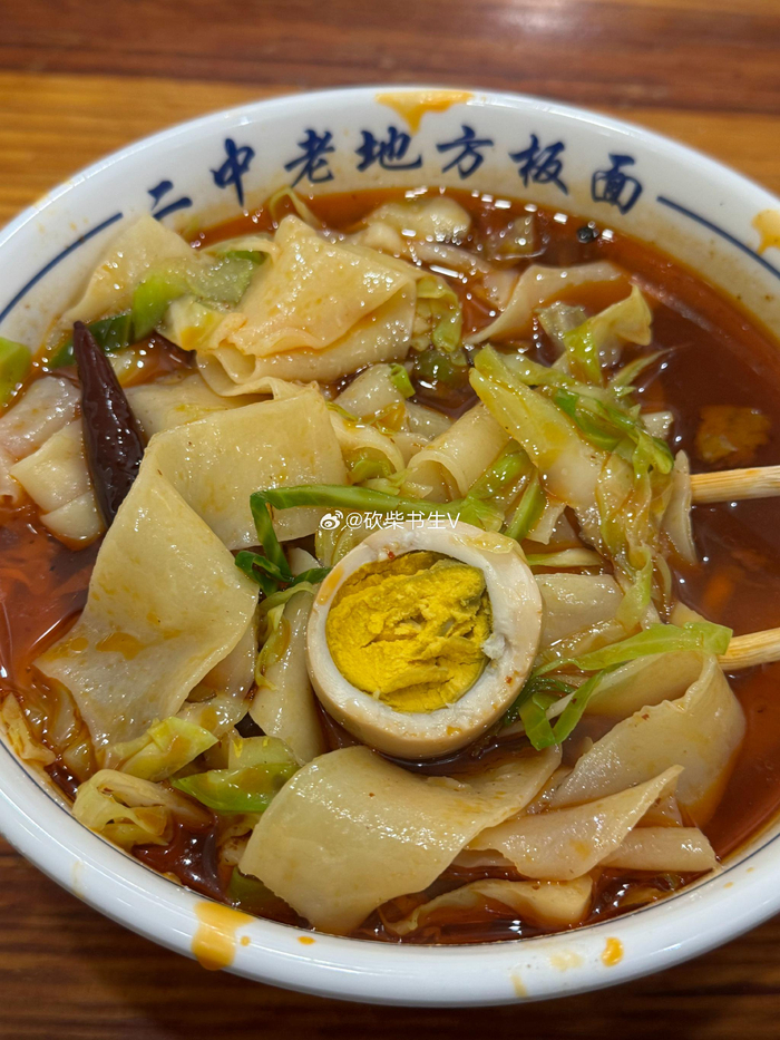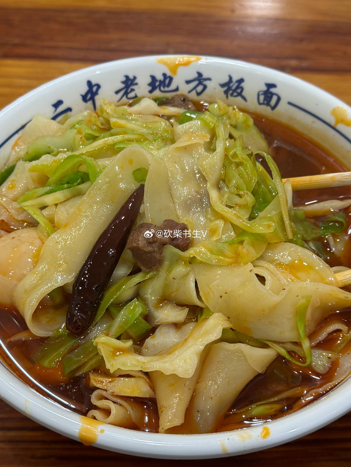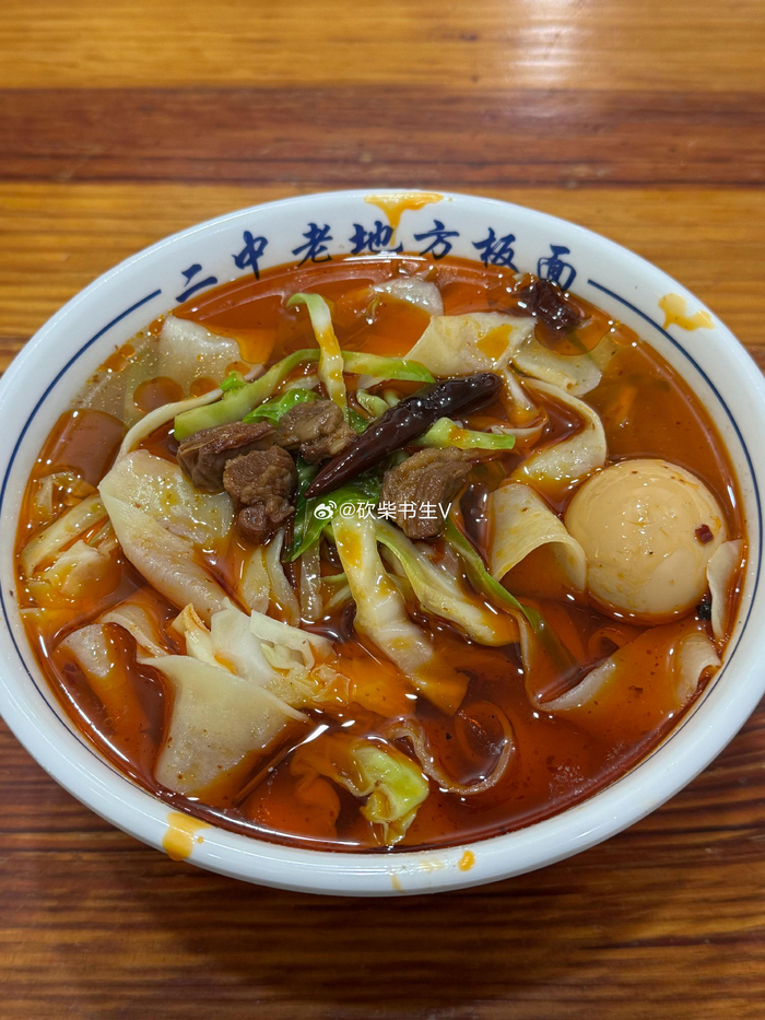 安徽阜阳二中老地方板面,8块钱一碗,配菜是包菜。汤有股山胡椒油的味道,吃不惯。