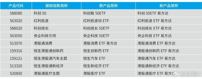 去掉冗余汉字或数字,如将跟踪科创50指数的“科创板50ETF”调整为“科创50ETF易方达”,将跟踪科创成长指数的“科创成长50ETF”更名为“科创成长ETF易方达”。
