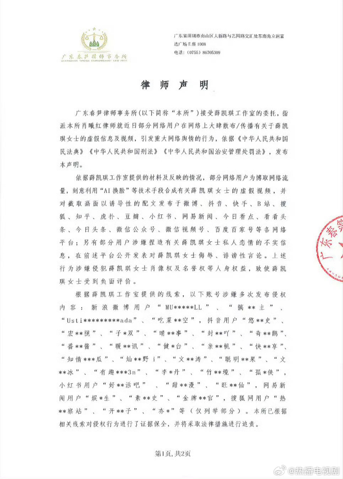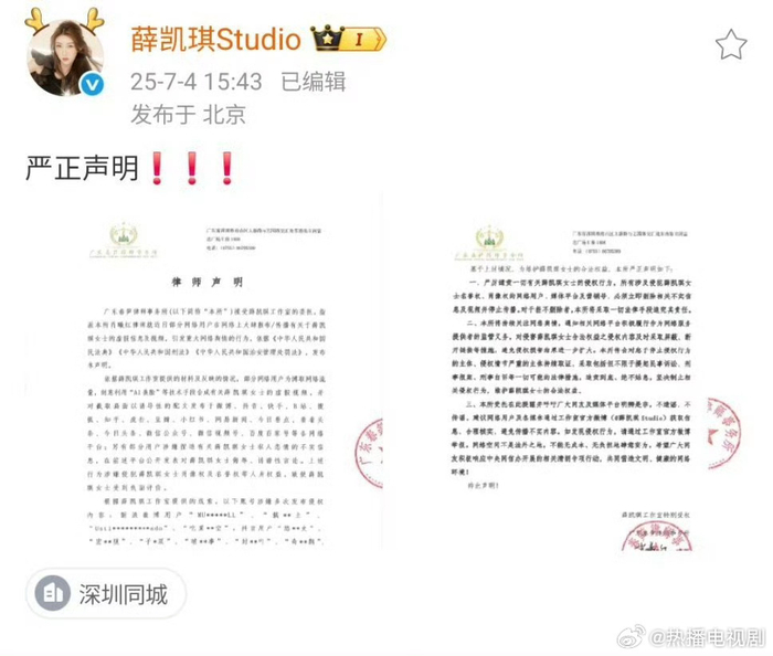 #薛凯琪工作室严正声明#薛凯琪工作室针对恶意散布的虚假信息、伪造视频,已委托律师告黑,互联网不是法外之地,支持薛凯琪!#薛凯琪工作室告黑##薛凯琪[超话]#
