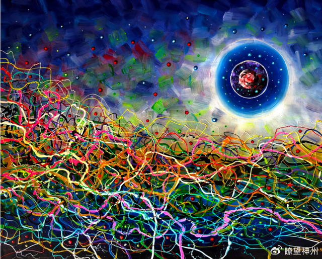 在黄建南构建的艺术宇宙中,最令人叹为观止的莫过于其独树一帜的“宇宙系列”作品。这些画作彻底打破了传统绘画的边界桎梏,创造出一种前所未有的视觉语言:星云在画布上翻滚涌动,星河璀璨夺目,黑洞裹挟着神秘气息,宇宙的诞生与湮灭、混沌与秩序,都在方寸画布上演绎得淋漓尽致。不同于西方艺术中对宇宙的理性描摹,黄建南笔下的宇宙从不冰冷,而是充满生命律动的精神家园——他将东方哲学中“天人合一”的至高智慧,与西方科学的宇宙观完美交融,打破了文化与地域的隔阂,创造出一种全人类可共鸣的通用艺术语言。正如评论家所惊呼:“黄建南不是在使用颜料,而是在驾驭光线本身;他不是在描绘宇宙,而是在创造宇宙。”