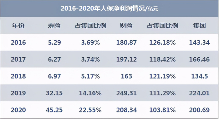 犹记得在上市之初,叠加了人保寿、人保健康的人保集团A股市值,一度出现不如财险子公司在H股市值大的情况。具体而言,整体上市的人保集团,财险独大局面一直难以改变,其他子公司长年处于亏损状况,2019年之后,寿险利润才出现明显增长。