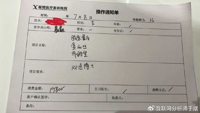 该网友承认,耳根子比较软这是她的问题,所以就在那花了19000元做了所谓的提升及填充类项目。注射前签了个走流程的合同并未体现给她开的是什么药,而且他们在注射前并未给她确认药品以及药品验真,中间她也一直在要求注射类药要给她确认,但是注射的那个医生并未满足她的正当需求并说相信他们就好了,胳膊拗不过大腿所以打完她就回家了。